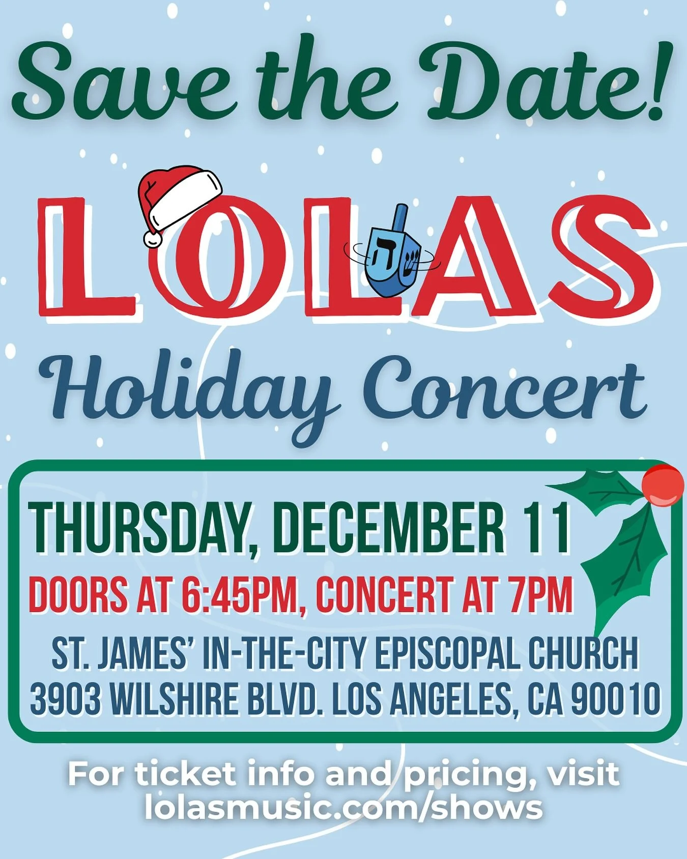 Join us for an evening of festive holiday tunes to get you in the holiday spirit! All ages are welcome. Tickets are available online or at-the-door until the venue reaches max capacity. More info coming soon!